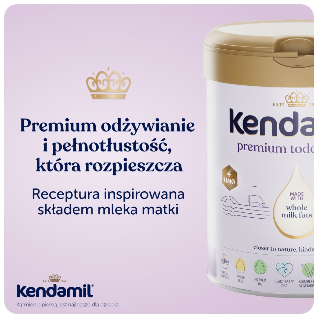 Ważna uwaga: Karmienie piersią to najlepszy sposób żywienia Twojego dziecka. KENDAMIL PREMIUM 4 HMO+ jest przeznaczone do żywienia małych dzieci od ukończonego 24 miesąca życia i powinno stanowić jedynie część zróżnicowanej i zbilansowanej diety małego dziecka. Podczas karmienia z butelki należy unikać niepotrzebnego przedłużania kontaktu smoczka z ząbkami, gdyż zwiększa to ryzyko wystąpienia próchnicy. Dbaj o higienę jamy ustnej dziecka, zwłaszcza przed snem. Przestrzegaj sposobu użytkowania dotyczącego przygotowania, karmienia i przechowawania, w przeciwnym razie zagrozisz zdrowiu dziecka. Nie jest przeznaczony dla dzieci do 12 miesiąca życia.