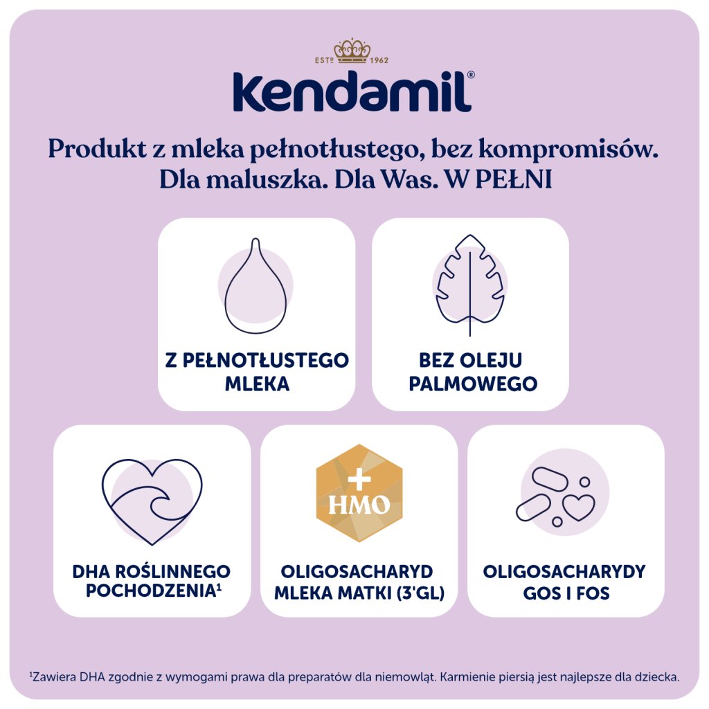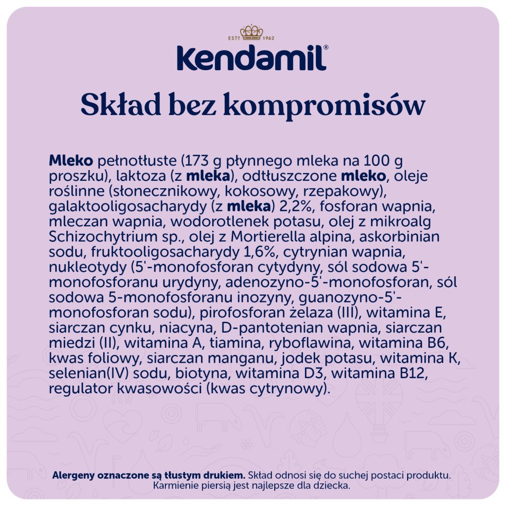 Nowa, ulepszona receptura z oligosacharydem mleka matki HMO (3´GL) oraz prebiotykami (GOS i FOS) powstała na podstawie ponad 60-letnich badań i rozwoju. Mleko modyfikowane Kendamil Premium inspirowane jest tym, co najlepsze w naturze. Jego bazą jest przede wszystkim wysokiej jakości mleko krowie z naturalną zawartością tłuszczu mlecznego, na wzór mleka matki. Przeznaczone dla dzieci od ukończonego 12. miesiąca życia do 2. roku życia. Opakowanie jest w pełni poddawane recyklingowi.