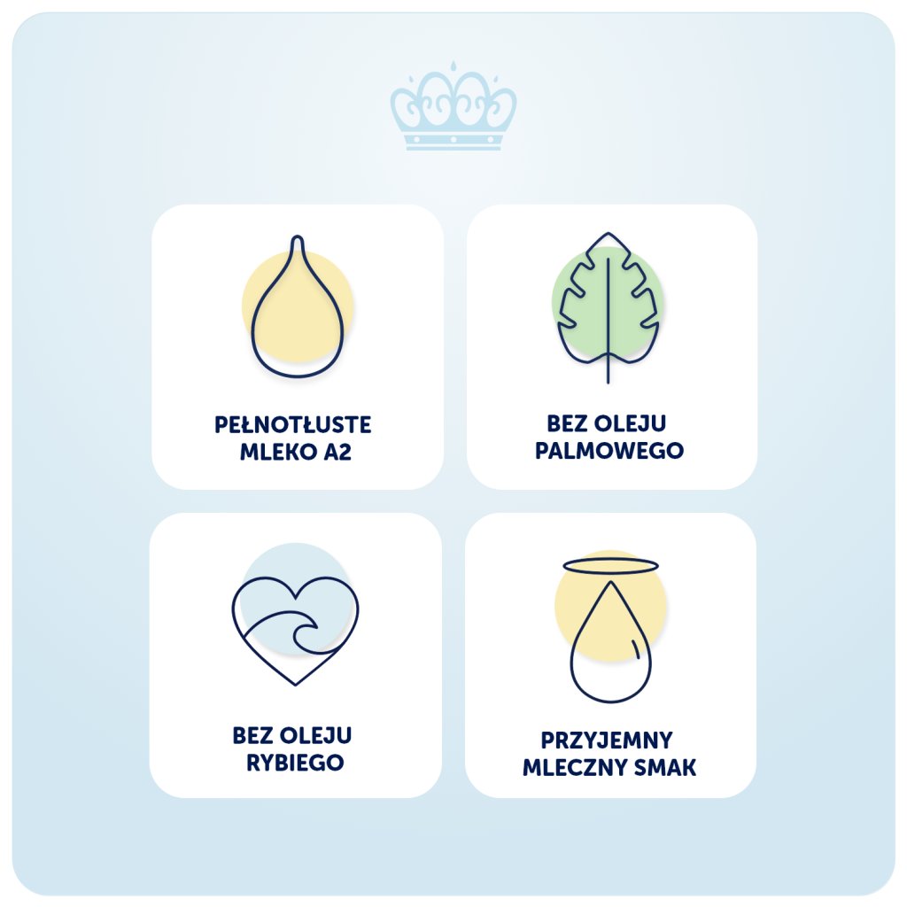 Absolutnie nie. Mimo, że jego podstawą jest prawdziwe, pełnotłuste mleko kozie, to jest ono, podobnie jak mleko krowie, które stosujemy w innych liniach żywności premium dla niemowląt, przetworzone w taki sposób, aby było łatwo przyswajalne przez niemowlęta i małe dzieci. Mleko stosowane do żywienia dzieci przechodzi proces produkcyjny, który umożliwia jego wykorzystanie w tego rodzaju żywności, w przeciwieństwie do mleka nieprzetworzonego. Proces jest na tyle delikatny, że mleko zachowuje wszystkie zalety mleka koziego, ale usuwa też typowy kozi „zapach”, dzięki czemu smakuje dzieciom.