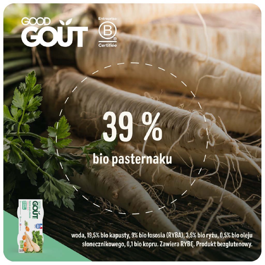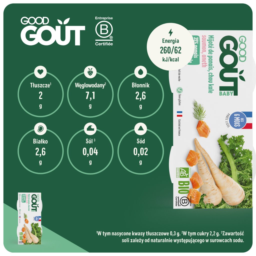 Good Gout BIO Łosoś z kapustą i pasternakiem (2x190 g), exp. 20. 11. 2025