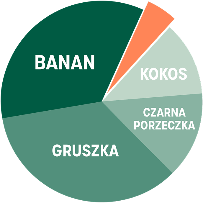 Składniki: *puree z banana, *puree z gruszek, *czarna porzeczka 14%, *napój kokosowy 12% (ekstrakt kokosowy, woda), *nasiona chia (Salvia hispanica) 0,8%. *z rolnictwa ekologicznego.
