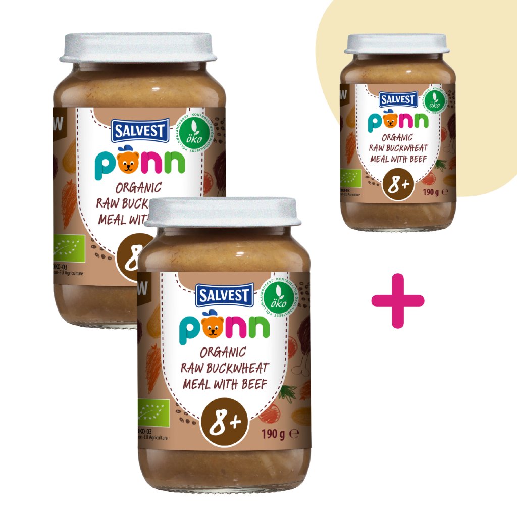 2+1 GRATIS: SALVEST Põnn BIO Mięso wołowe z kaszą gryczaną i warzywami (190 g)